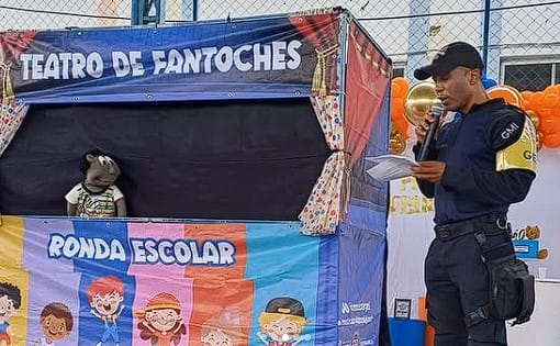 O grupamento especial de Ronda Escolar participou dos festejos dos 40 anos de fundação da Escola Municipal Clara Pereira, em Nova Cidade, levando conhecimento aos alunos com o Teatro de Fantoches.
