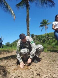 Nessa quarta-feira (19), os agentes do Grupamento Especial de Proteção Ambiental (Gepam) participaram da ação de plantio de árvores nativas, realizada na Ong S.O.S Silvestre, em Papucaia.