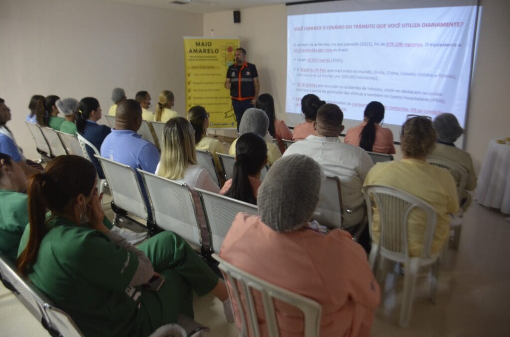 Parceria entre as secretaria de Segurança e Transporte, levam informação sobre a importância da prevenção no Trânsito, para profissionais do Hospital Estadual Prefeito João Batista Cáffaro, localizado em Manilha. Com objetivo de conscientizar motoristas e pedestres sobre cuidados no trânsito, a palestra, realizada pelo superintendente de Trânsito do munícipio de Itaboraí, Cleberson Borges, com apoio do comandante da Guarda Municipal de Itaboraí, Alexandre Barbosa, levou números sobre o trânsito nacional, orientações sobre o comportamento do motorista e do motociclista, além de trazer à realidade fatos que não enxergamos no dia a dia.